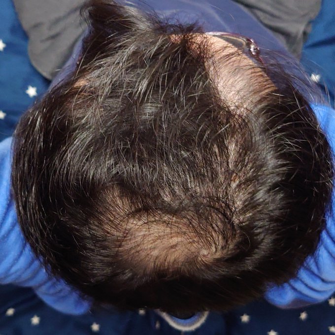今見返しても、頭頂部の肌色がしっかり見えてしまっているという。